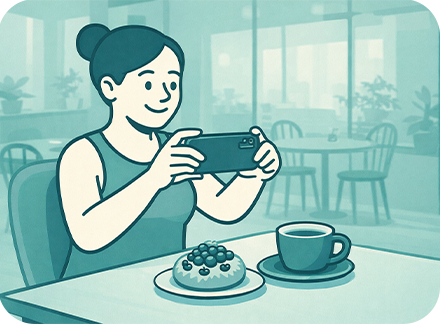Продолжая логику минимальной системы, перейдем к фиксации питания. Не начинайте с подсчета калорий, это очень сложно и за вас эту работу сделает приложение. В начале нам нужна не математика, а полная, не ретушированная картина. Для этого идеально подходит простое фотографирование: делайте снимок того, что вы едите, максимально близко к моменту. Это занимает секунды, но полностью снимает главную когнитивную нагрузку. Вам не нужно спорить с собой, вспоминать вечером соусы и размеры порций или решать, насколько “правильной” была тарелка. Уже через несколько дней такая фиксация создаёт реальную «ленту фактов», которую невозможно собрать по памяти. Именно она помогает заметить паттерны и закономерности вашего питания. Когда фотографирование станет устойчивой привычкой, можно сделать следующий шаг для повышения точности: добавить к учету вес порции. Этой информации, сочетающей визуальную картину и минимальную метрику, уже более чем достаточно, чтобы получить работающий контур обратной связи: вы сможете скорректировать питание, соотнести его с ежедневной активностью и целенаправленно двигаться к вашим долгосрочным целям.