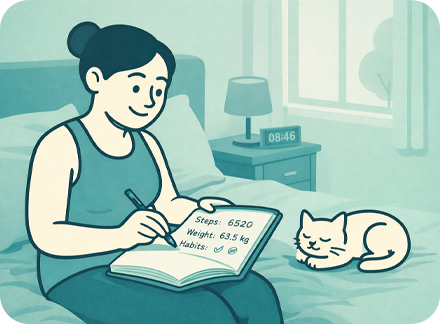 Дневник не должен отнимать время. Сведите фиксацию шагов и веса к двум простым привычкам: шаги - вечером, вес - утром. Постоянство условий (например, всегда до завтрака) важнее, чем идеальная точность.