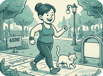 ➤ Сравнивайте себя только с собой. Не пытайтесь угнаться за гиперактивным руководителем или коллегой, который вышагивает по 20 тысяч шагов в день. И тем более не расстраивайтесь, глядя на чужие космические рекорды в турнирных таблицах: в любом марафоне всегда найдутся те, кто захочет обмануть систему или просто выделиться на фоне остальных, генерируя аномальные 35 000 шагов (и мы-то с вами знаем, что для этого иногда достаточно просто привязать телефон к собаке). Попытка соревноваться с такими «рекордсменами» принесет лишь разочарование, стресс и ложное чувство собственной неполноценности. У каждого свой метаболизм, свои исходные данные и свои обстоятельства. Главное – стать для себя доброжелательным наблюдателем, видеть свой личный прогресс, двигаться в собственном ритме и сравнивать свои успехи только со своими же вчерашними результатами.