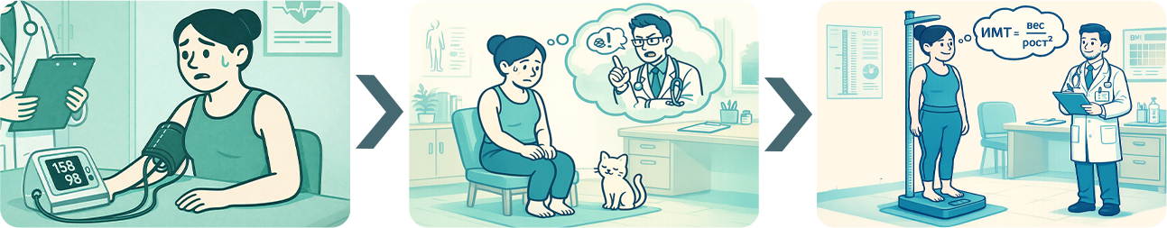 Что это даёт на выходе? Люди не начинают худеть — они начинают избегать врачей. Откладывают обследования, идут позже, когда уже не до профилактики. И вместо «что мне делать?» в голове звучит «что со мной не так?»